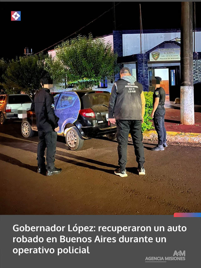 AGENCIA MISIONES.UNO | Un automóvil con pedido de secuestro vigente por robo en la provincia de Buenos Aires fue recuperado por la Policía en Gobernador López, tras un procedimiento realizado por efectivos de la Unidad Regional VI.